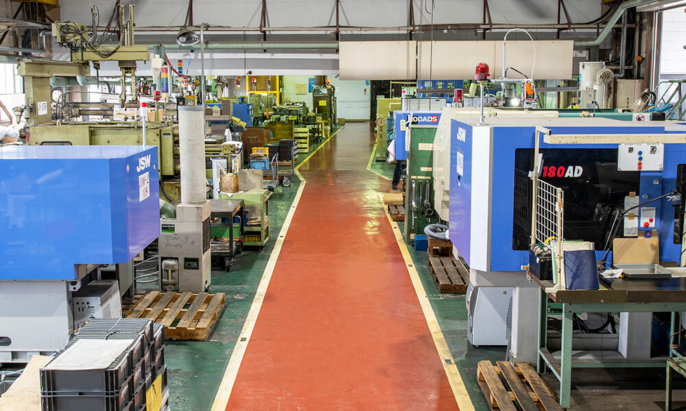 | 対応可能サイズ | 射出成形機t数:40t、50t、70t、100t、180t (協力企業にて180t~350t、450t~650t、850t、1300t、1600t、2500t) |